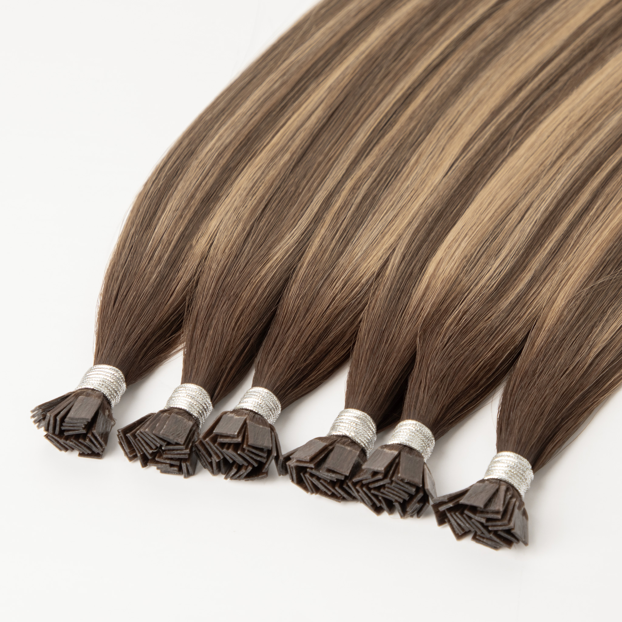 Weft extensions zijn banen die je in het haar aanbrengt bij de klant met daarin 3 stroken (1 strook is 20gram en 3 stroken is dus 60 gram) haar, dit vormt samen 1 weft baan die je in het haar van de klant kan hangen. Je kan de 3 stroken in verschillende kleuren krijgen zodat het zo natuurlijk mogelijk overloopt. Voor meer volume in het haar bij de klant heb je meestal aan 1 weft baan al genoeg, wilt de klant een verlening in het haar dan moet je al denken aan 2 weft banen in je haar van elk 3 stroken. De weft zit aan het eigen haar vast en dit doe je door middel van ringetjes met aan de binnenkant silicone zodat het eigen haar van de klant niet afbreekt, daarna word de weft met naald en draad vast gemaakt aan het haar.